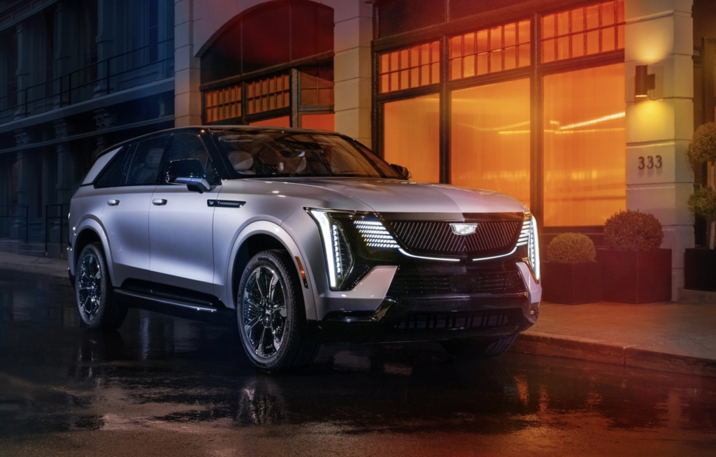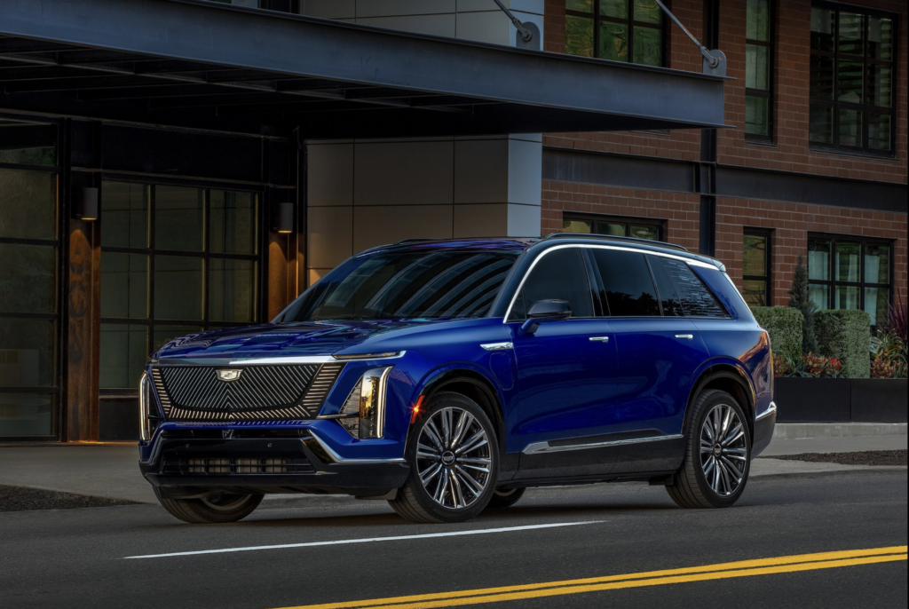 A three-row electric SUV delivering up to 305 miles of range with dual-motor all-wheel drive. Producing up to 615 horsepower, it’s designed for families and long trips with seating for seven and Cadillac’s latest driver-assistance systems.